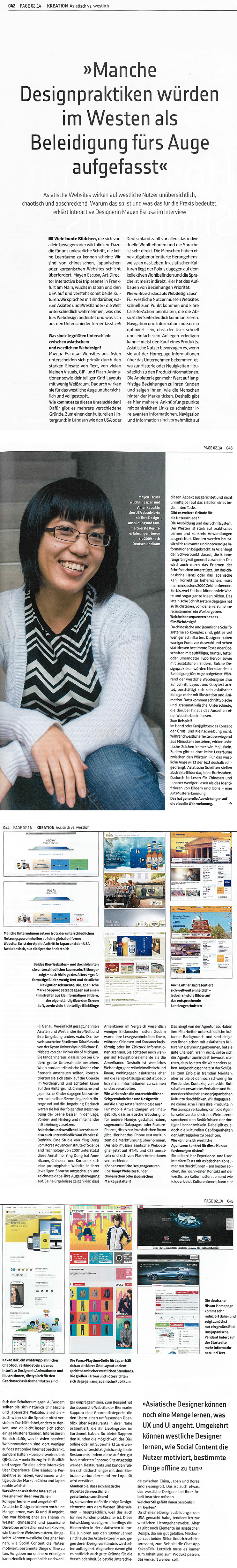 Having this experience gave me motive to research, understand and present on multicultural UX/UI design, mainly the differences between West European and East-Asian web design. For more information on the topic, check out my PAGE interview, "Manche Designpraktiken würden im Westen als Beleidigung fürs Auge aufgefasst" in German.